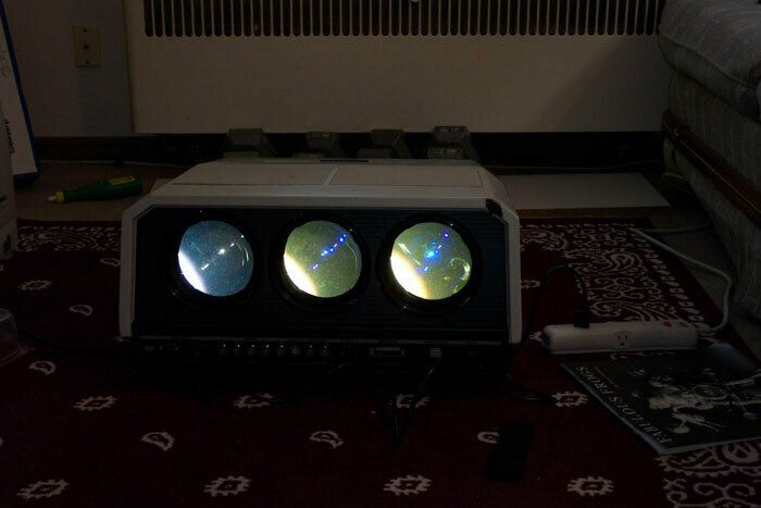 I got this beast of a data projector from my friend Stunt. I couldn't get it to fire up tho, the CRT tubes look to all have blown. But if anyone from the parking garage asks, someone stole it.
