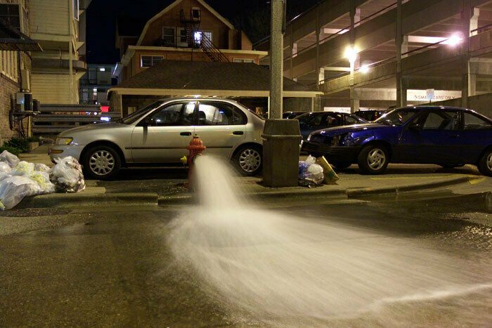 They let the water out of the hydrants in the neighborhood. This Kodak camera does a pretty decent job at night shots actually.