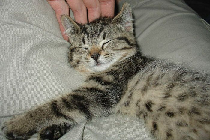 Cricket the soon-to-be three-legged cat in Bender's lap. One of his front legs was injured, and if it doesn't heal, they'll have to amputate it. It doesn't work and has no feeling, so I don't think he'll miss it much. He's such a cute little kitten.