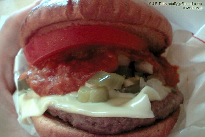 MOS Burger's delicious "Spicy MOS Cheese Burger." I don't think there are any MOS Burger restaurants in the USA, but I could be wrong. It's a Japanese company after all. But here in Japan, it's the best place to get a burger!