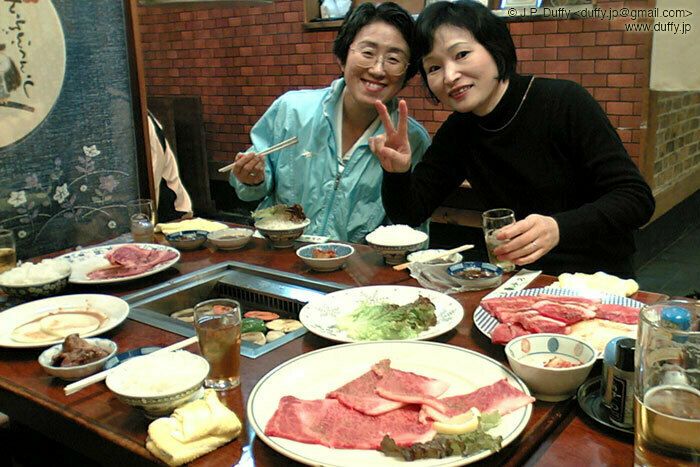 We had our year end party today. It's a little early, because the other ALT and I won't be here after this week. We're going home for vacation! This restaurant is a very expensive Yaki-niku or "grilled meat" place. They give you the raw meat, and you cook it yourself. The quality was excellent. The beef was so tender you could just bite thru a piece like you might bite a marshmallow. Of course the consequence is the meat is ridiculously fatty, but it's worth eating at least once! I ate some veal by accident, sorry little tortured baby cows.