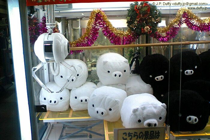 I saw these cute little pigs when I was out shopping today. Winning one looks pretty impossible tho, and at $2 a try, I'll let someone else have the fun. ^__^