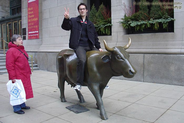 Michigan Avenue in Chicago. Taxis were hard to get, so I was riding this cow around.