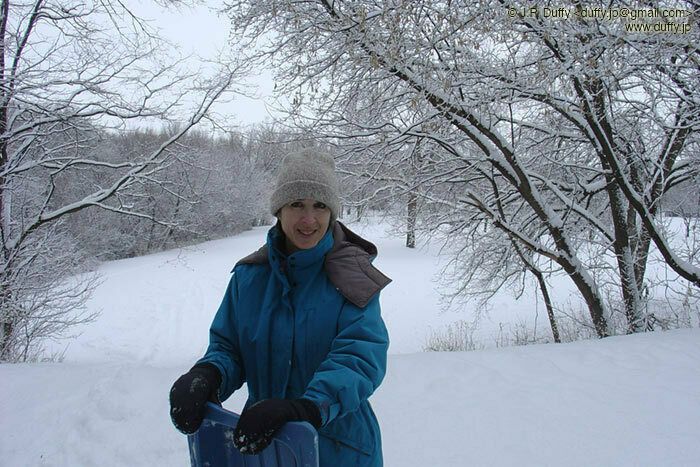 Here's my mom at the top of the Marshal park hill. Sledding was always a family event for us in the winter, so we had to go out when I was back.