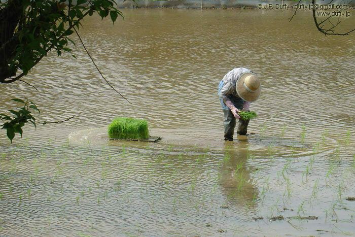 Rice planting the hard way.