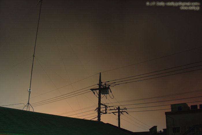 I rode my bike down to the ocean tonight. An interesting thing about bicycles in Japan is that most have an old-fashioned self-powering light in the front. Well, apparently mine couldn't handle the intense voltage pumped into it by my ludicrous speed, and it popped. So I found myself in complete darkness on a country highway with a broken light. A troublesome situation. Well, worry not-- I needed only pull out my mobile phone and switch on the camera light. Not terribly bright, but effective. I finished my quest to the ocean, and took a few night shots, including the one here.
