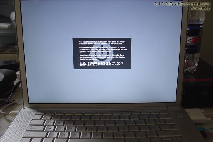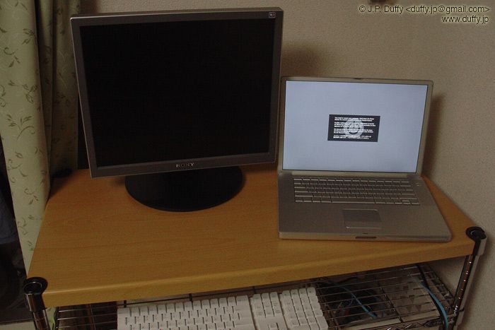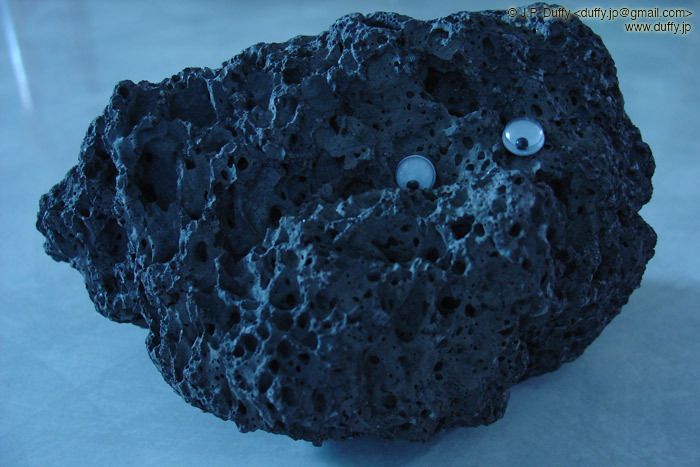 Is it a Martian toad? Nope, it's a Mt. Fuji lava rock with plastic eyes. I was having trouble getting an interesting shot of this rock (understandable since it's just a rock), so I turned off the lights and took a 30 second exposure with only the ambient glow of my powerbook in the corner of the room as illumination. Does it look like the default OSX wallpaper color?