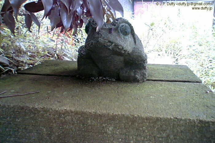 This is a frog statue guarding a neighbor's house. Frogs are awesome.