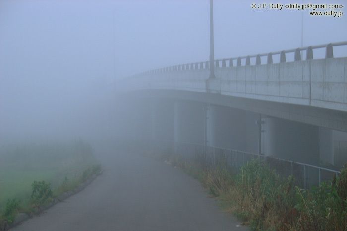 Have I mentioned how humid Japan can be in the summer? Today brought me to question my personal definition of "fog." When I mentally picture fog, I think of cold mornings over little Wisconsin lakes. But what if it's in sweltering heat? Hard to imagine if you've never experienced it I think. When I got home from my short photo shoot, my clothes were damp, and my hair was 'fresh out of the shower' wet. Uncomfortable to say the least.