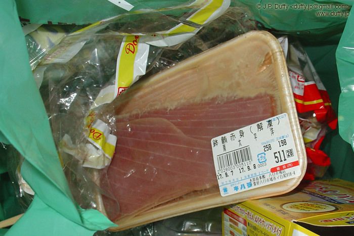 I'd like to tell you a little story. For the last few days, my kitchen has been smelling kinda funky. But I didn't know why. I had almost no trash in the trash bin, the sink was totally clean... "What's the deal?" I wondered. So it was getting worse and worse, but I couldn't find the source. I thought, "Oh boy-- something died in a wall, terrific." But then I had a revelation. I was in the shower this morning, going over how to explain the oil-burn on my left hand to my girlfriend in Japanese. The previous night I had cooked some bacon for a BLT, and the oil splattered on me from the pan. But I was thinking, "Will she believe that? She knows I don't like bacon." And I tried to rationalize it myself. "Why did I eat bacon last night? Didn't I have anything better to eat? I know I didn't eat the fish yet. But I don't remember seeing it in the fridge! Could it be in my backpack still?" Keep in mind at this point I'm still in the shower, and I bought the fish on Wednesday. When I finished my shower, I stepped out into the kitchen (yes, my shower opens directly into the kitchen). I peered down at my innocent looking backpack resting peacefully on the floor. I always use my backpack when I go grocery shopping, because it's easier and saves plastic. So I open it up, and BAM! A cloud of the most horrific, nasally abrasive gas consumes my wet head. I hesitantly reach in, and amid the caked on slime is the above pictured slab of molded fish. It was hidden behind an inconspicuous flap. Visually undetectable on Wednesday, but today an olfactory nightmare. I set it in the trash, and snapped a quick photo because that's just what I do. Now, being exposed to open air, my apartment smelled like the dorm room I shared with that baboon freshman year. I took out the trash, but the smell lingered. My backpack. The slime. The horror. I tried to clean it; I set it in the bathtub with a pile of laundry detergent and scrubbed away. But it is a lost cause. As I write this, it has been soaking for 16 hours to no avail.