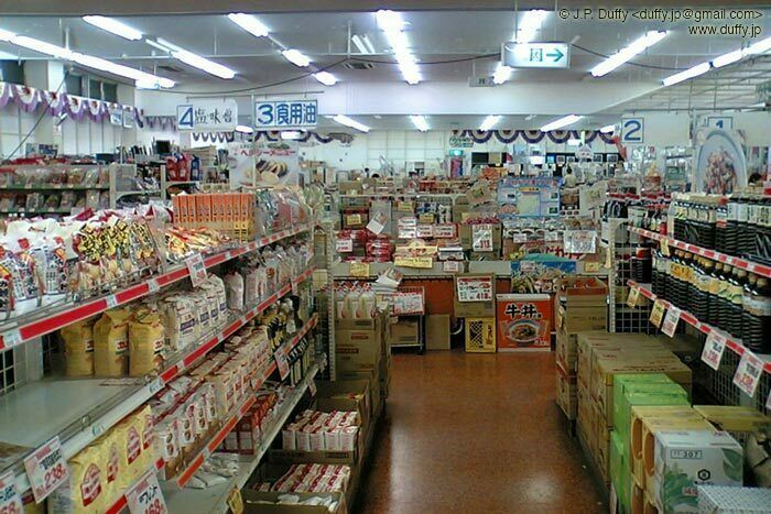 This is a shot of the Kihara grocery store near my apartment. A nice selection of soy-sauce can be seen on the right. I don't know if you can see it, but way in the back of the store, you can buy TVs and massage chairs.