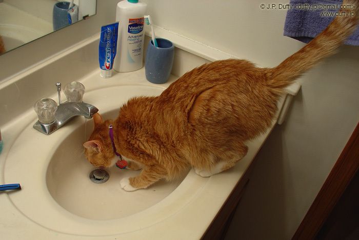 Georgia drinking out of the sink. Hey, it's better than when she drinks from the toilet. :P