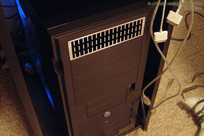 This is a picture I took to show my friend the cool harddrive heatsink I bought. I'm going to be getting three more to fill up the front of the case. I think it's really slick, but you have to be a geek to appreciate this kinda thing.