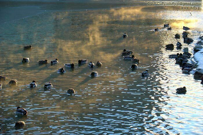 This was at about 7:30 in the morning. The sunrise was illuminating the mist flowing over the water. I'm not sure why these ducks are still in Wisconsin.