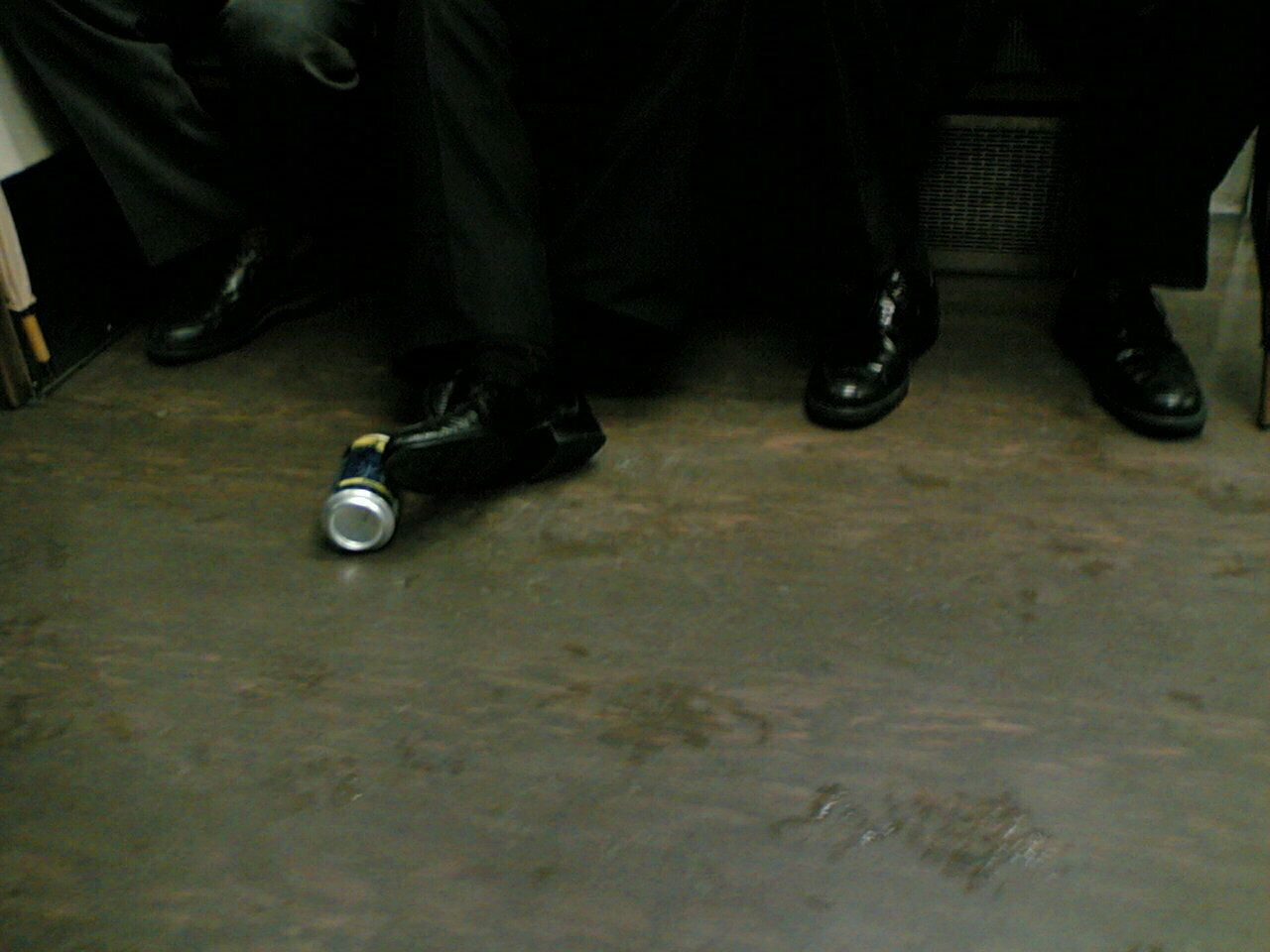 Old sleepy men riding the train home at night.