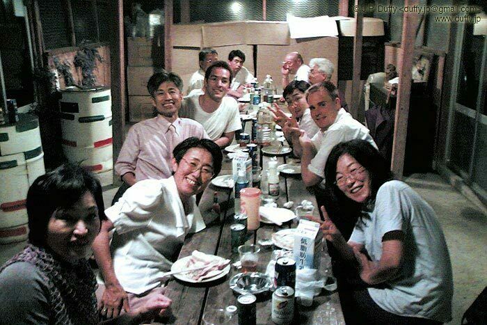 This is my going-away party from work. We're eating at Tako Pizza, my favorite pizza restaurant in Japan.