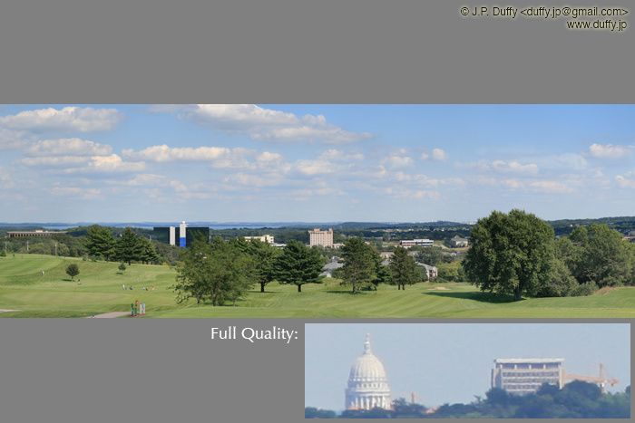 This photo is an incredible 75.5 MegaPixels. This was taken from the Pleasant View Golf Course in Middleton, WI. In the full quality image, you can easily see the Capital Building in neighboring Madison. If I can find some way to print this type of photo, I'm thinking of selling them. If you have interest, please contact me by the email address visible in the picture.
