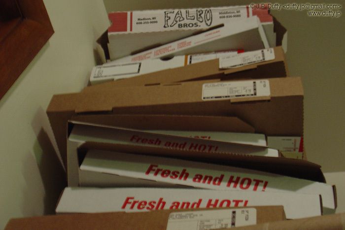 Myris and Navyrain's leaning tower of pizza.