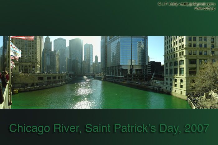 Saint Patrick's day in Chicago. We saw the green river, and went up to the 96th floor of a building to eat lunch.