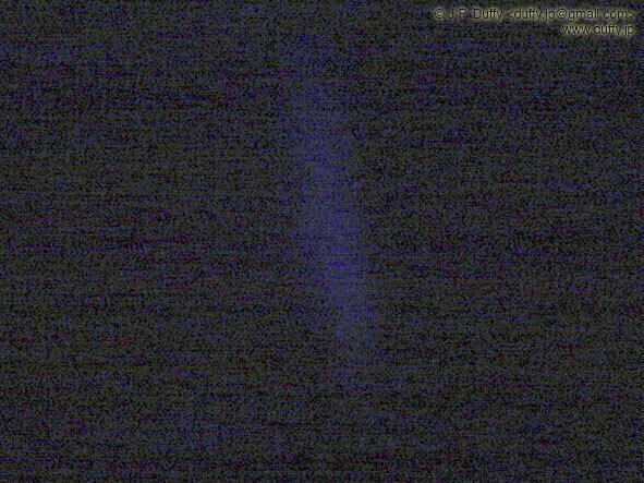 The blue streak in the middle of this photograph is the light emitted by a band-aid wrapper when opened. I discovered this phenomenon when I was a child opening band-aids in the hall closet. Naturally, you'd want to close the closet door to open band-aid wrappers, as not to be seen. Sadly, scientists first noticed this in 1939, so I was not awarded a Nobel Prize.