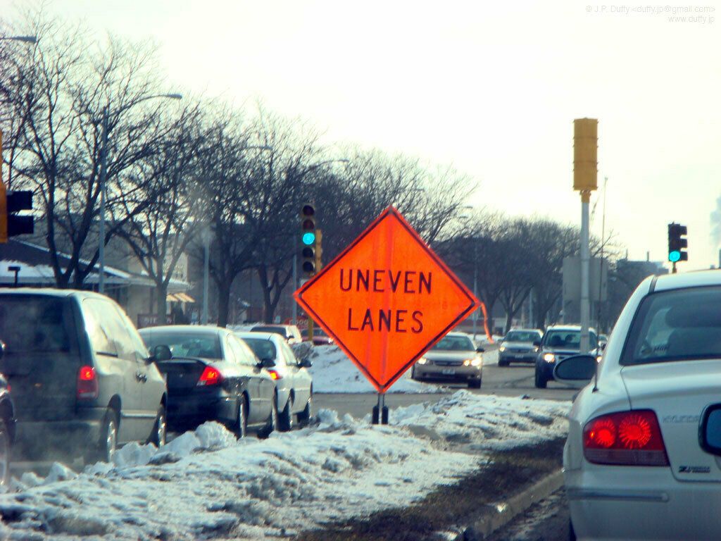 Uneven Lanes: The daily freezing and melting of ice jacked the bus lane up a good two or three inches on University Ave.