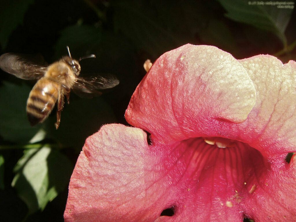 Honey bee in flight.