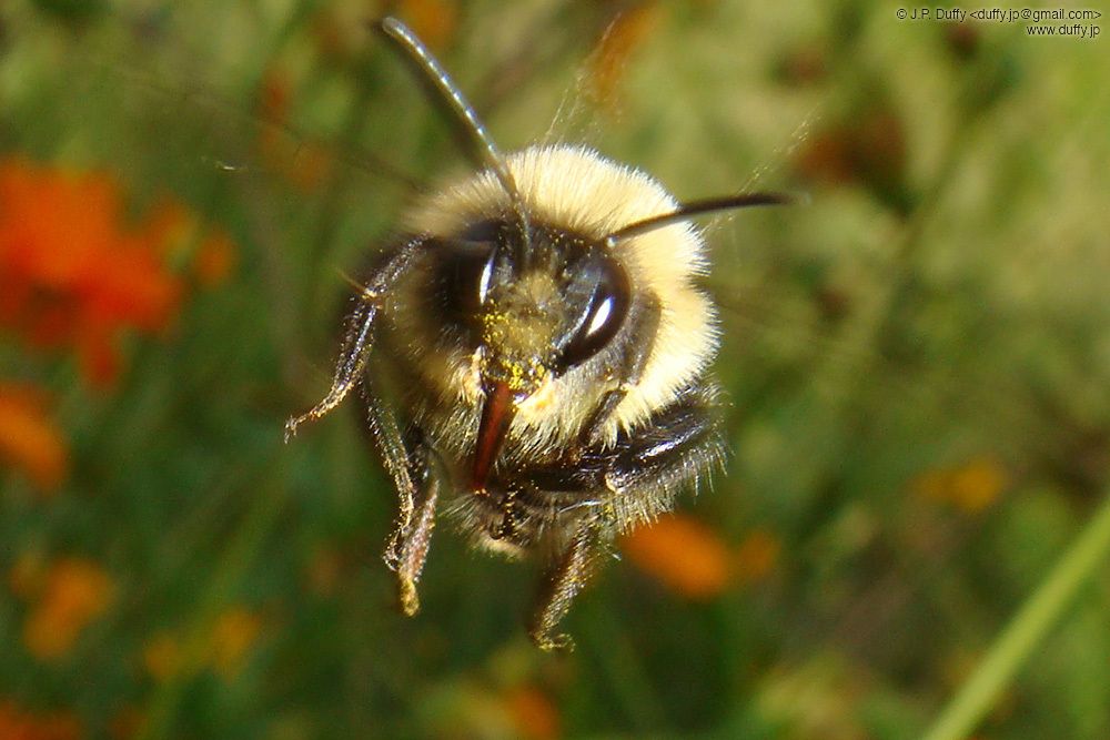 Honey bee in flight.