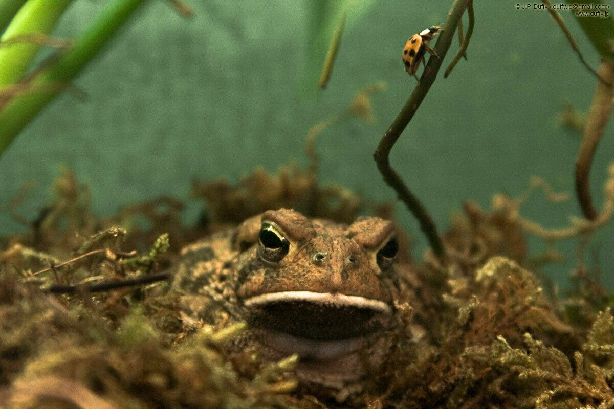 Onsokumaru getting used to his newly cleaned home. He's not yet used to it, otherwise that ladybug would be toast.