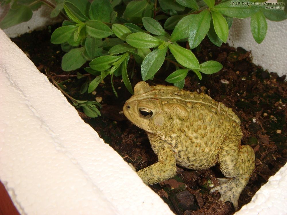 We've been having some problems with bugs in our herb garden, so we sent two of our toads in there to help.  They really did eat some bugs and after a while seemed fairly comfortable sitting under our basil and umaina.  We let them have the run of the place for probably a good half hour while we kept a close eye.