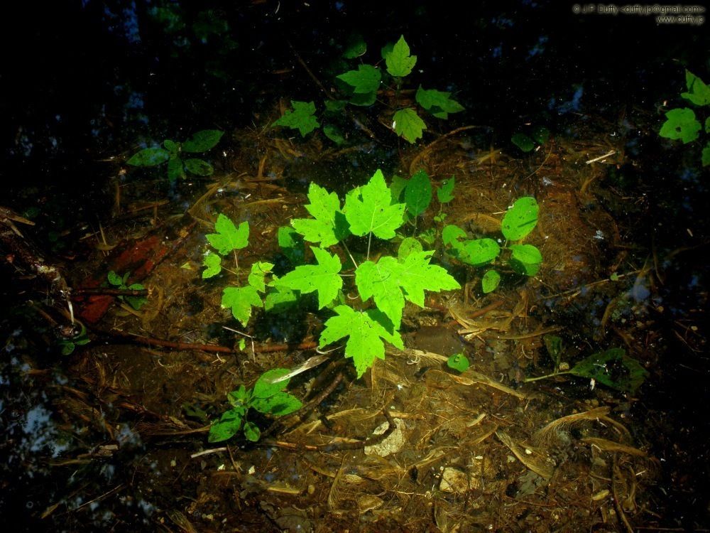 A submerged maple seedling at the UW Arboretum following heavy rains the night before.