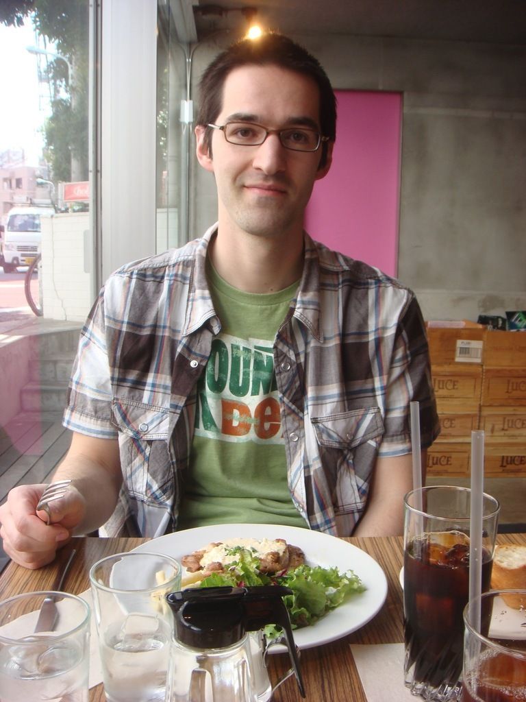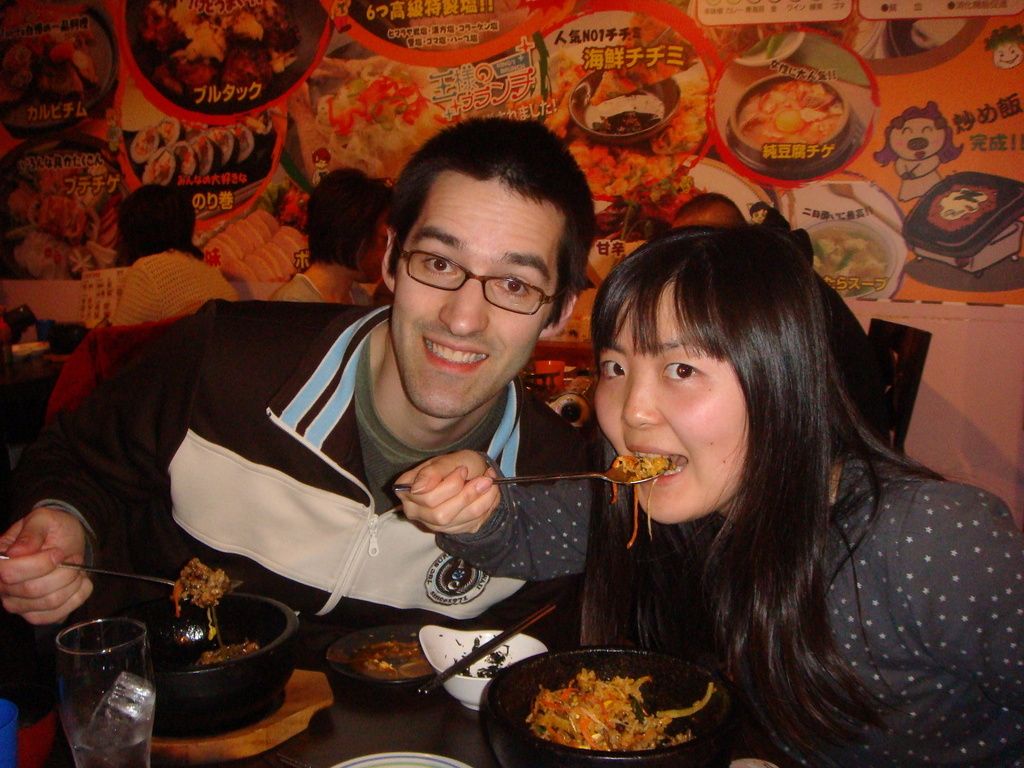 Eating at a Korean restaurant in Shinokubo called "Ton Fu." I had Purukogi and Masami had Bibinpa.