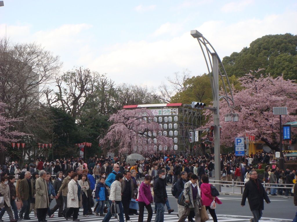 There are some Sakura trees in a tiny park in Ueno that bloom earlier than most varieties. We tried to have a look, but you wouldn't believe how many people where there.