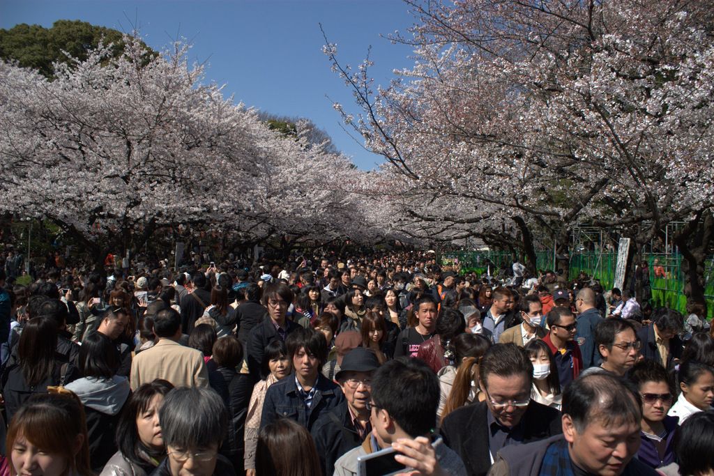 I visited Ueno Park today. The cherry blossoms were at their peak (a single day a year) and it was a Sunday. That equates to this epic flooding of humanity. Every walk way was shoulder to shoulder, every flat surface was covered by a blue tarp for a group party. Quite the sight.