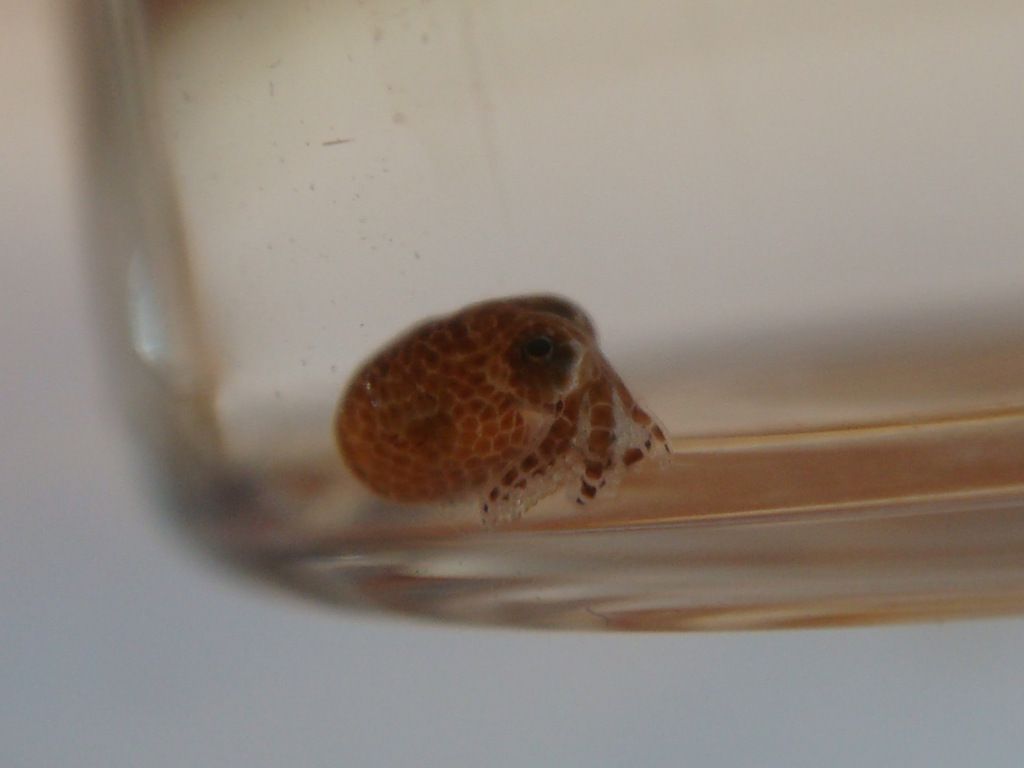 We went to a small exhibit at the Wisconsin Institutes for Discovery on campus. Here is a squid born just today.