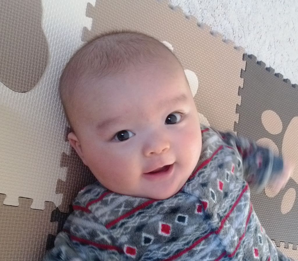 Sasuke discovered that he can touch things with his hands recently.  It's super cute to watch.
