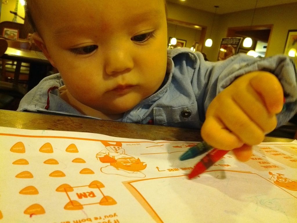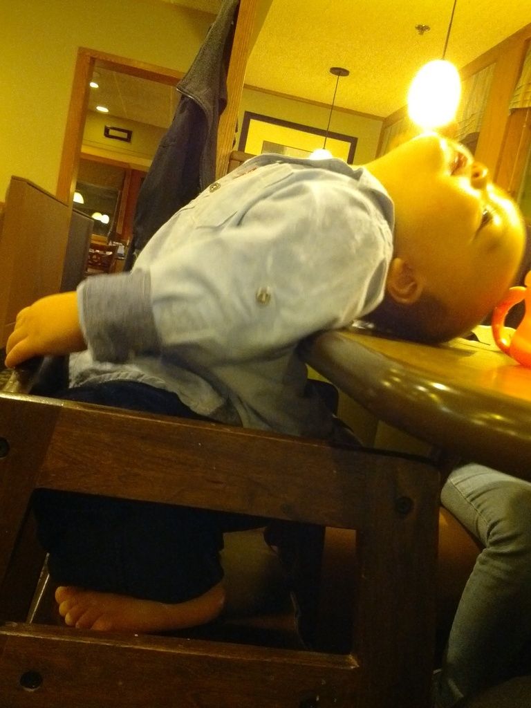 We went out to dinner at Perkin's. Sasuke had an interesting take on posture.