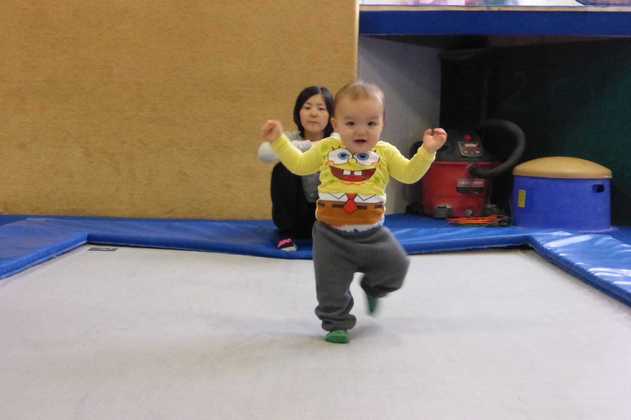 We took Sasuke to the gymnasium! He loved the trampolines.