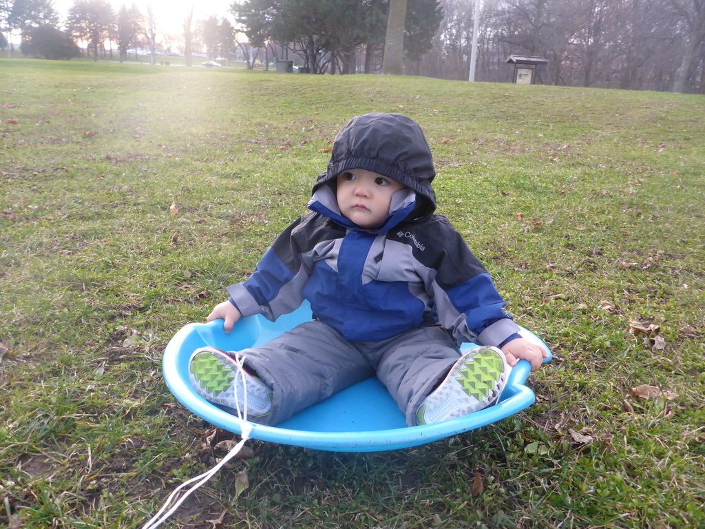 When I was a kid, my dad took me sledding in the snow.  I had to improvise.