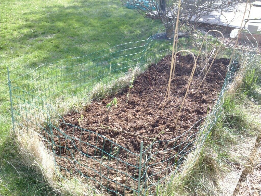 I added six new plants in our berry area. All different kinds. To try and keep the grass and weeds under control this year, I put down a generous amount of cedar mulch.