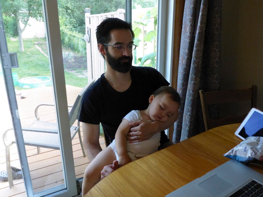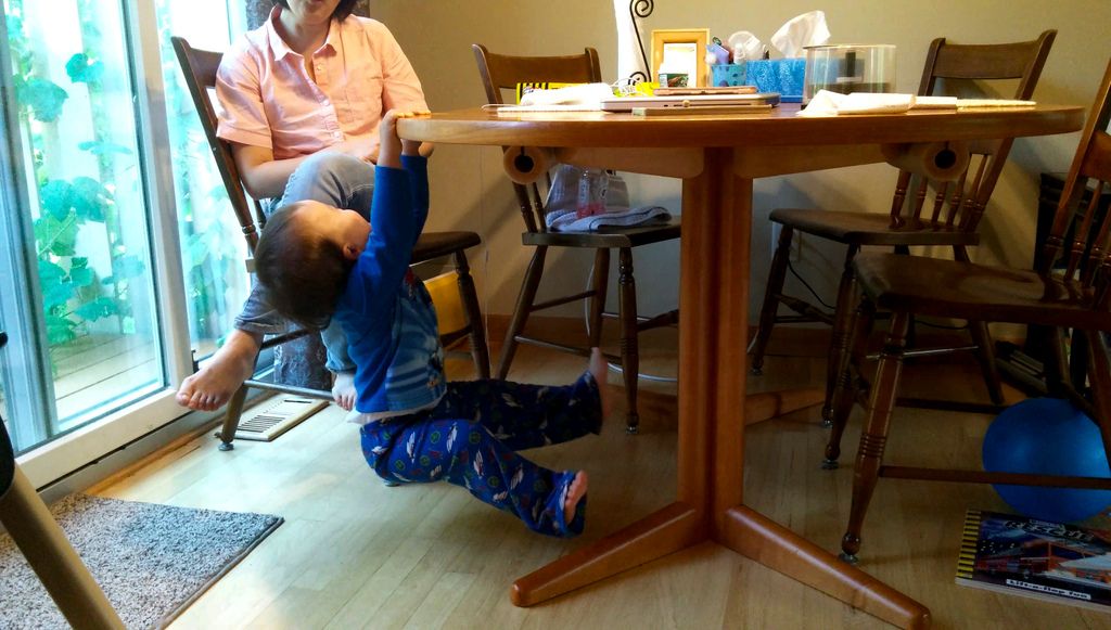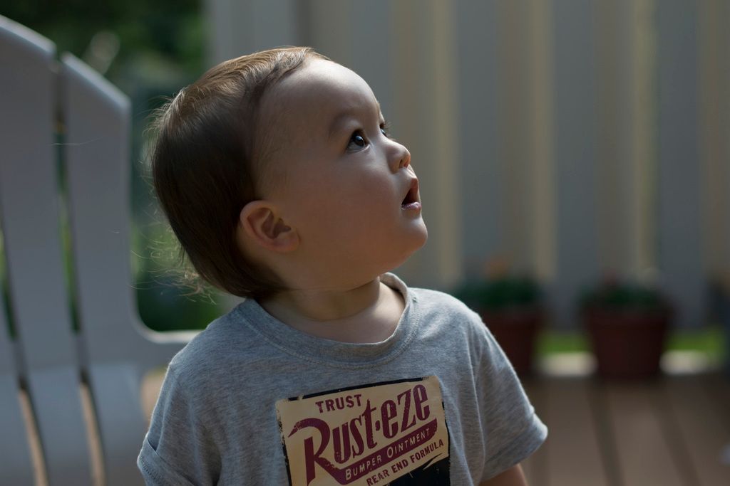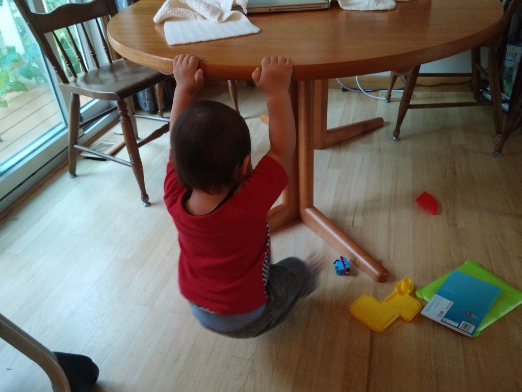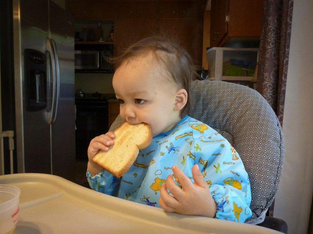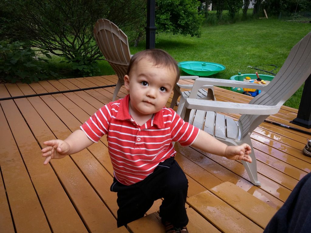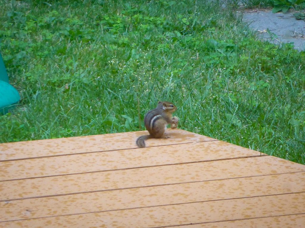 Sasuke pointed out the window and said, "Aam! Aam!" His word for "eat." What do you know, there was a chipmunk eating a peanut.