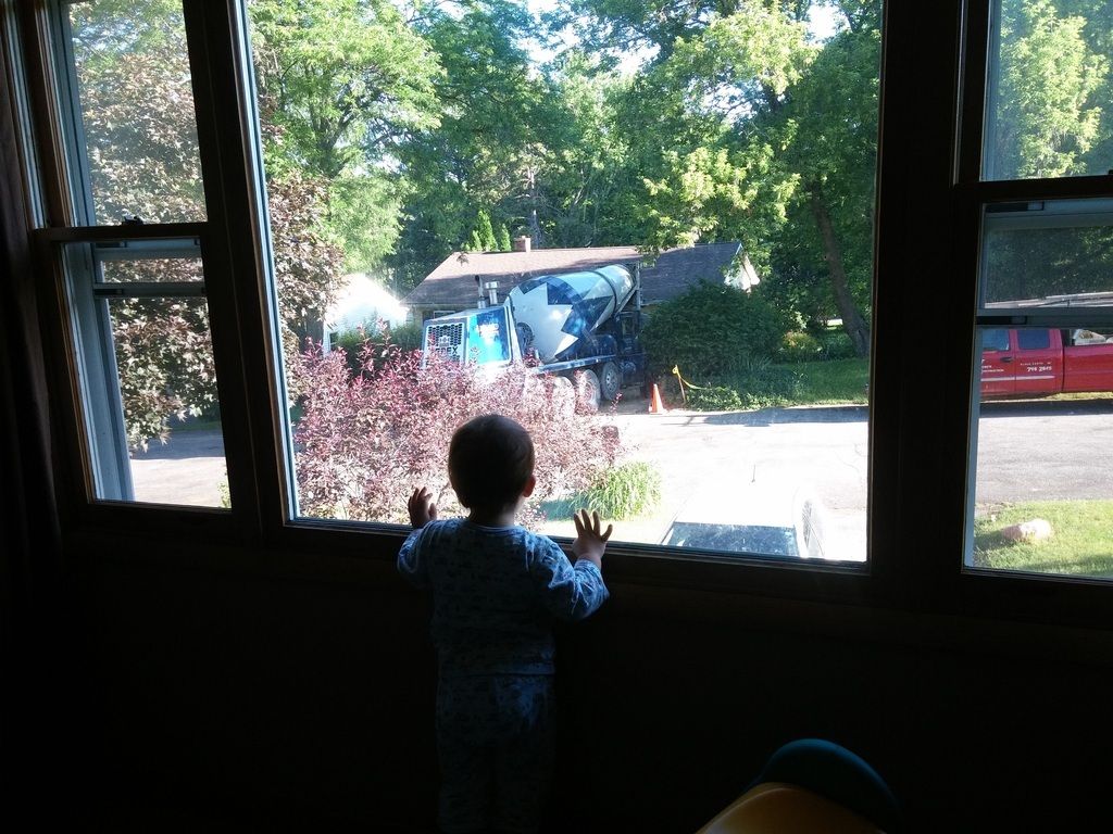 Our neighbor had her driveway replaced and the cement mixer truck was a huge hit.