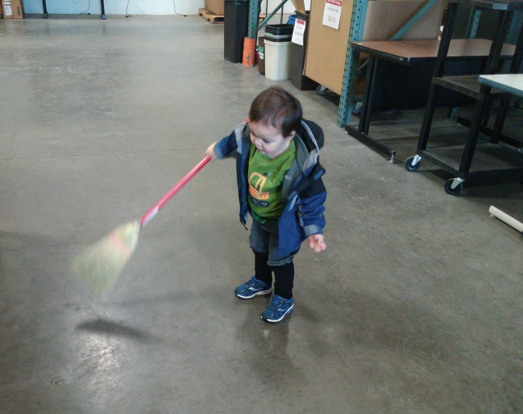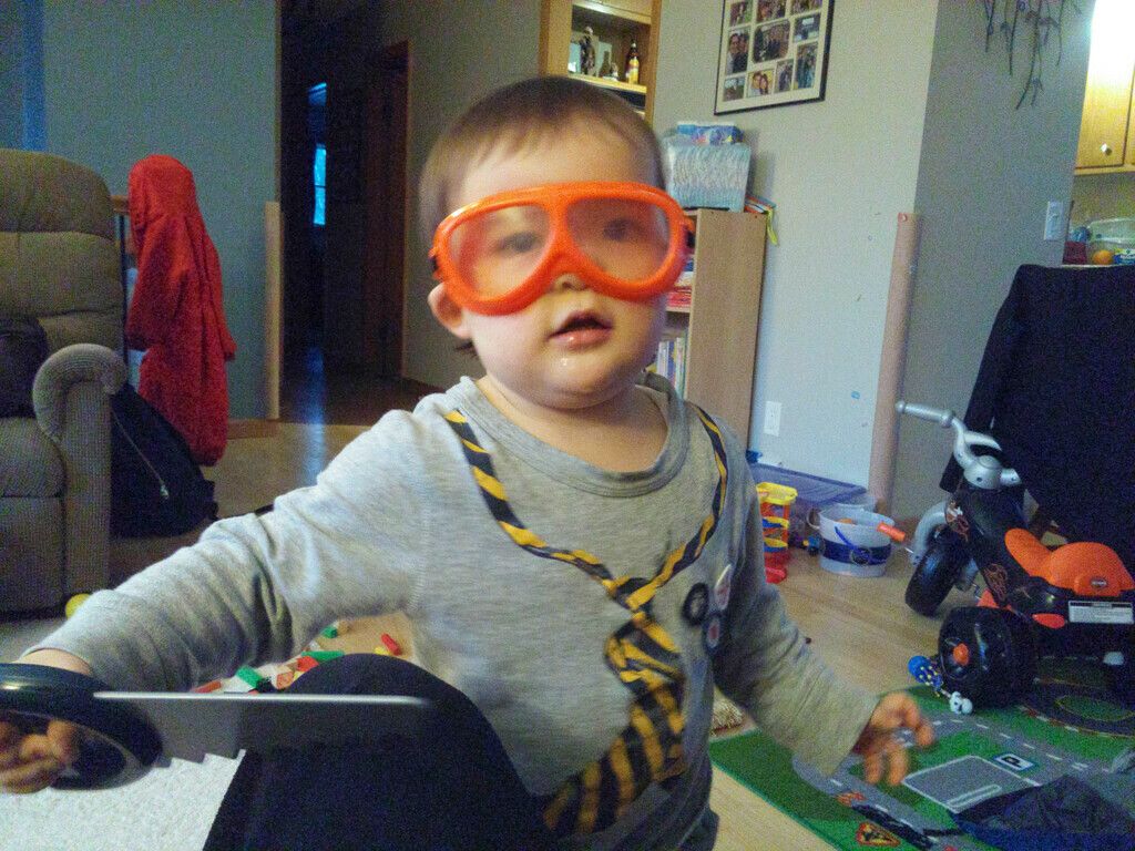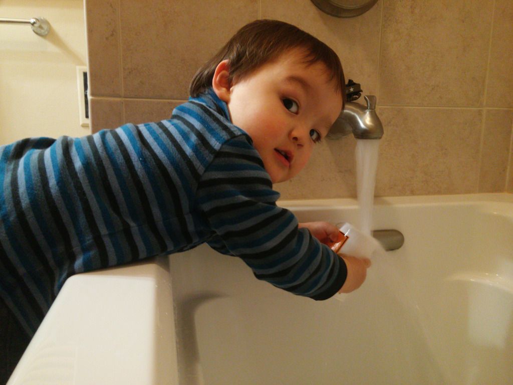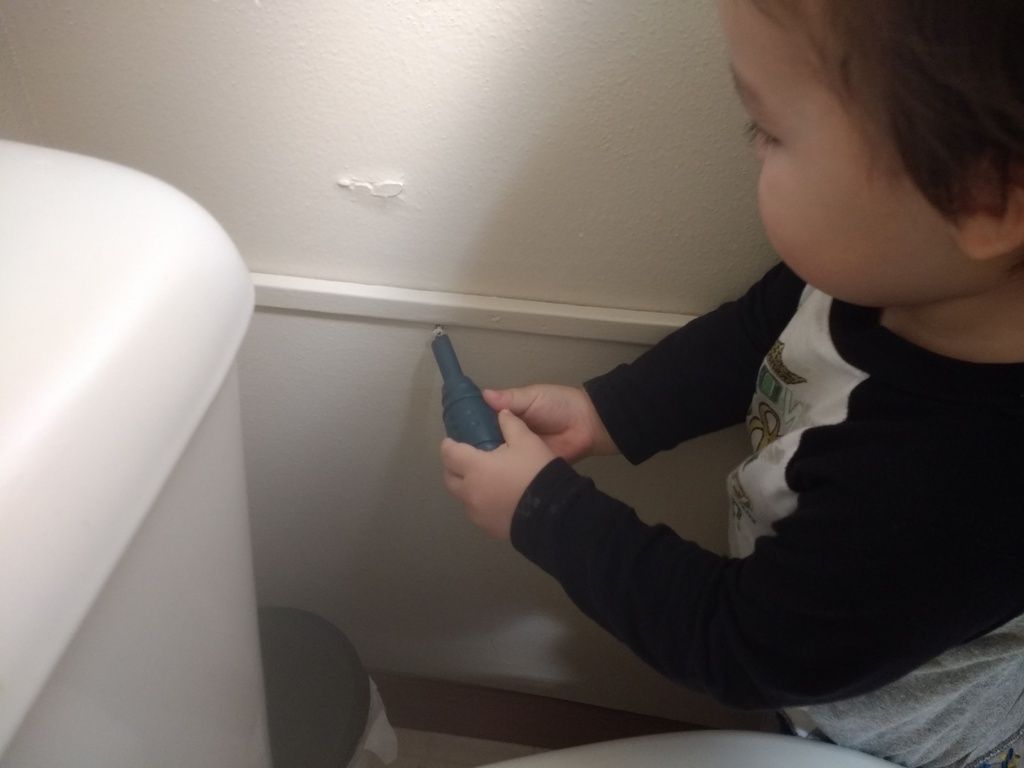 Sasuke saw the screw holding on our plumbing access panel and said "Broken!" He ran off and got his screwdriver and fixed it.