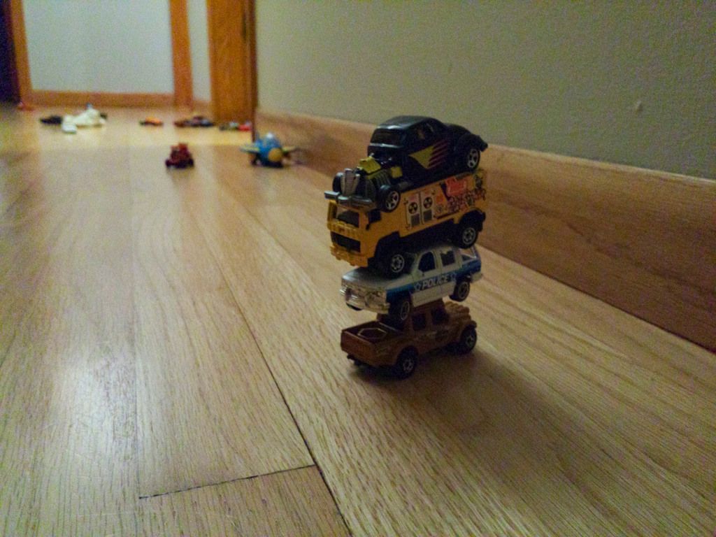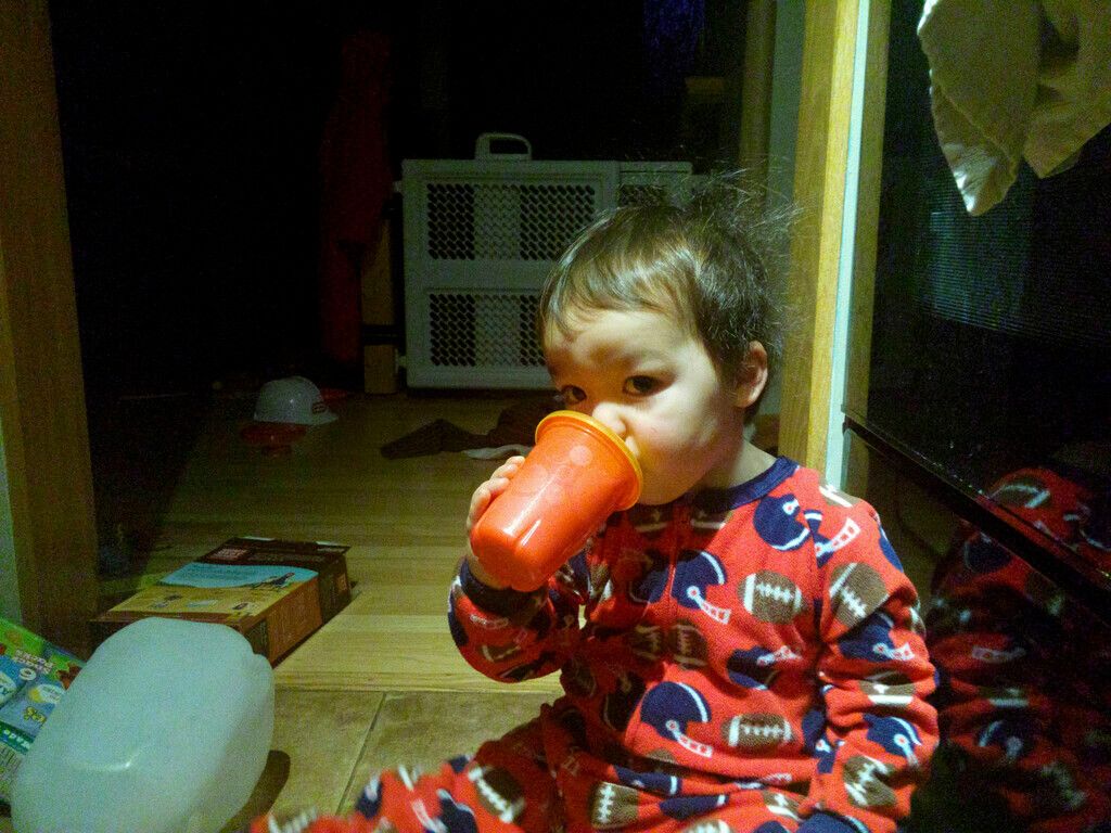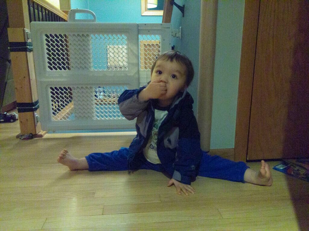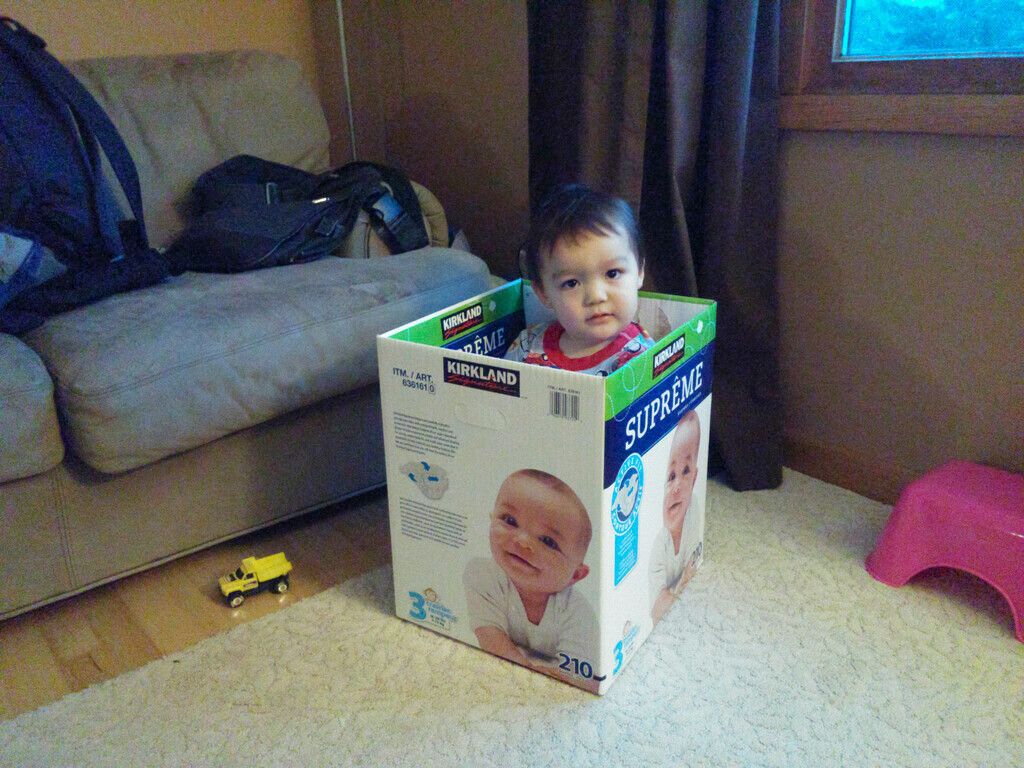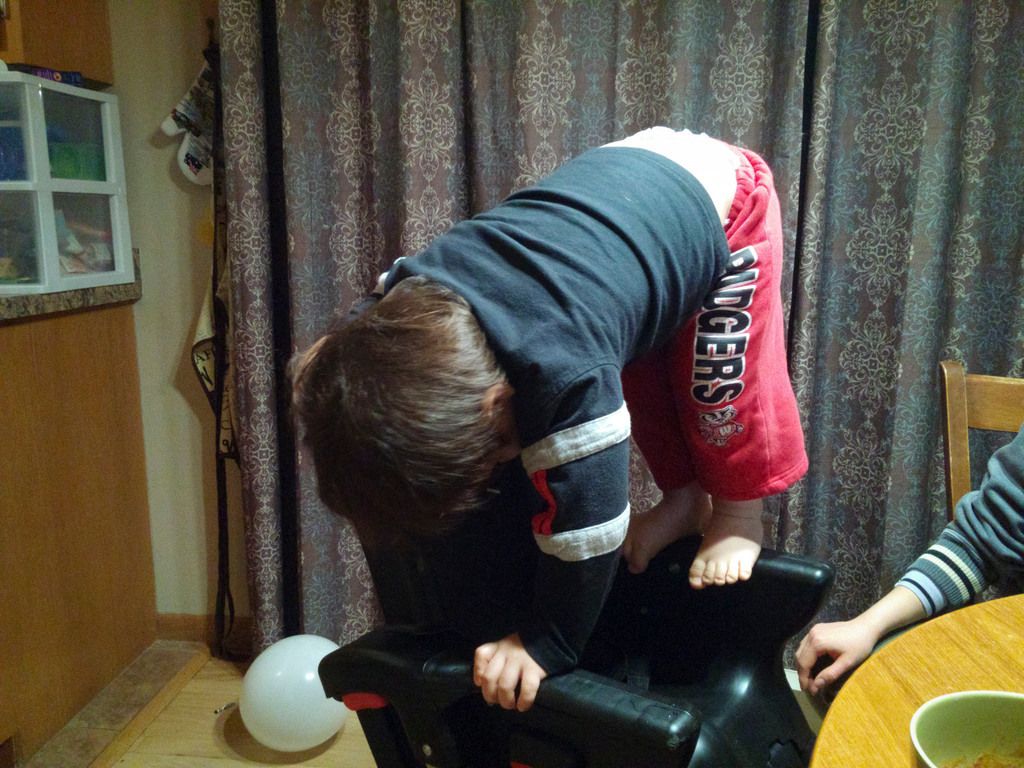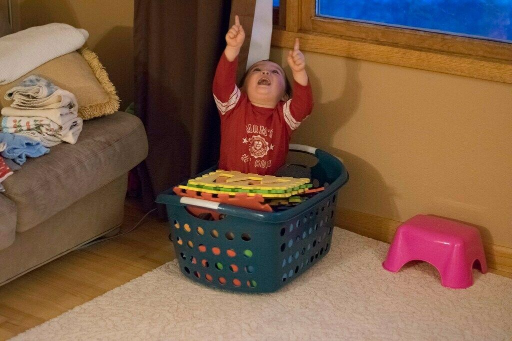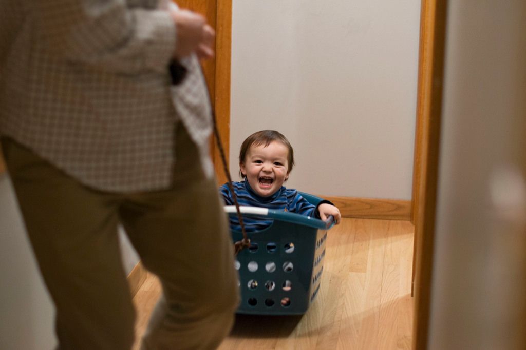 He wants me to pick up the laundry basket with him in it and fly him around.