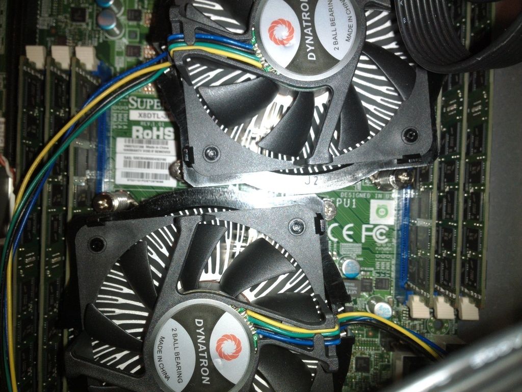 My CPU fans came in for the low budget home server I'm working on. I had to take the tops off and rotate them just exactly right to make it work. You can't slide a piece of paper between them.