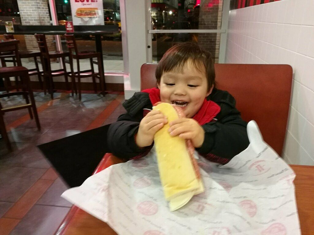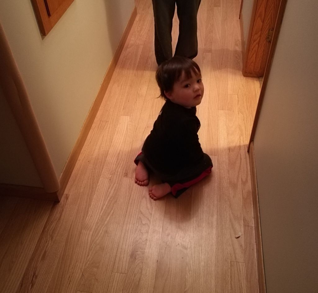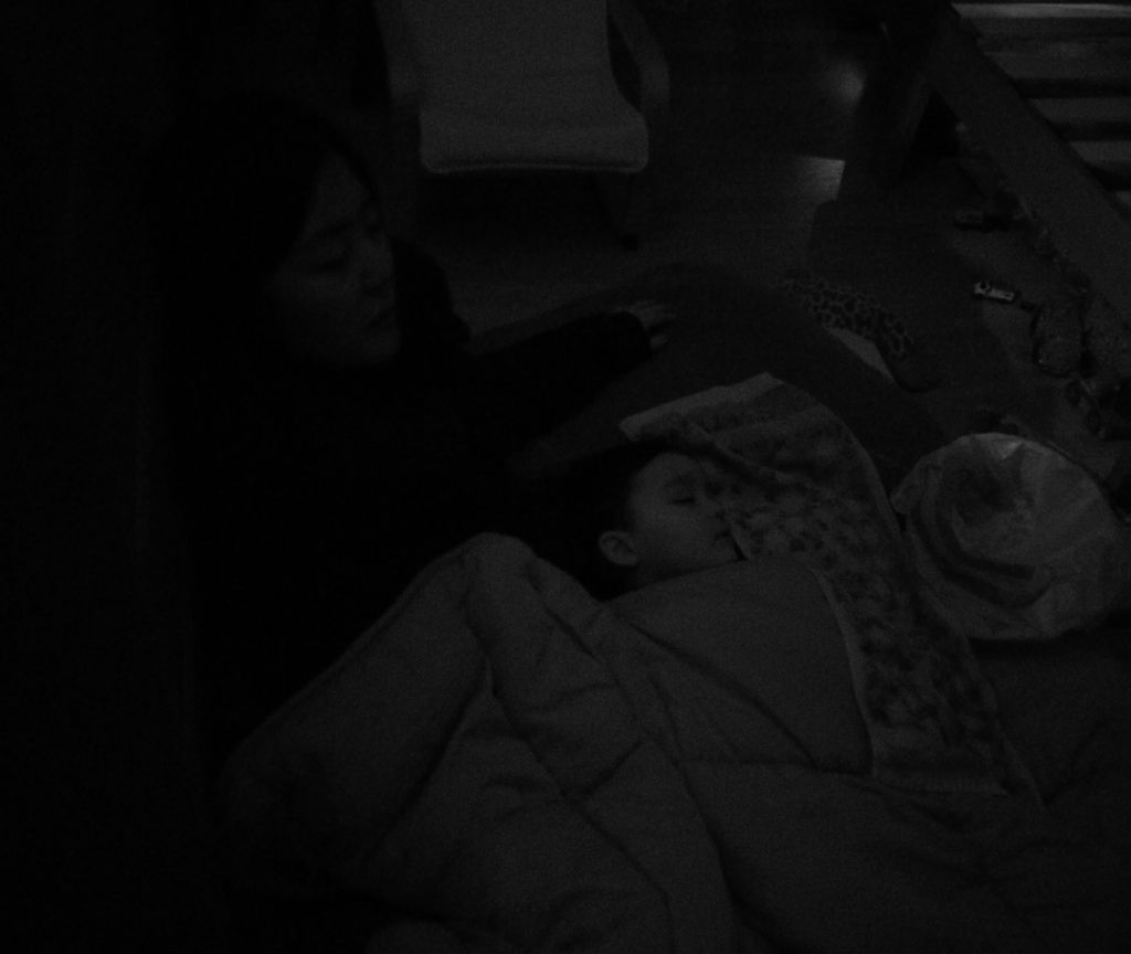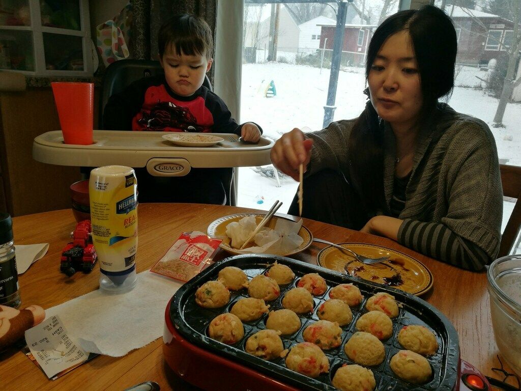 At two in the morning with a barfing kid, Masami is one tough mama. You can't see in the photo, but she's sleeping against a dresser with an airplane neck pillow so Sasuke can sleep in her lap.