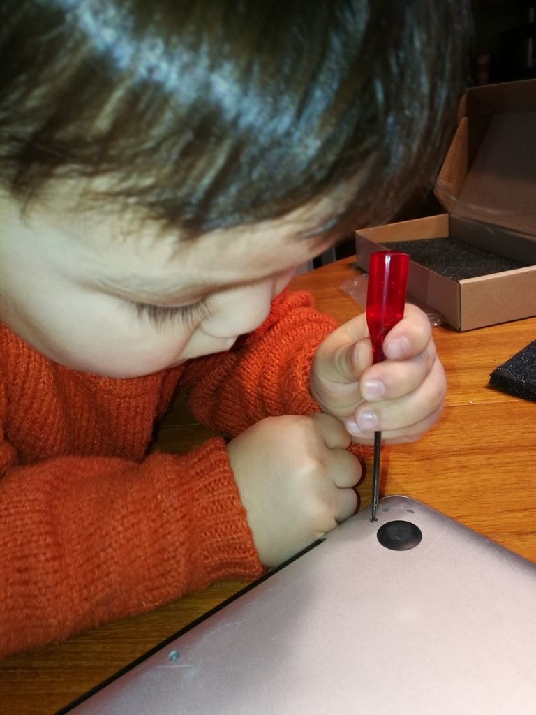 The eBay battery I bought to rescue my surplus store laptop died after a couple months. The seller was very responsive however and sent a replacement at no cost. Sasuke is a pro at battery replacements now. He really did the tiny screws all by himself.