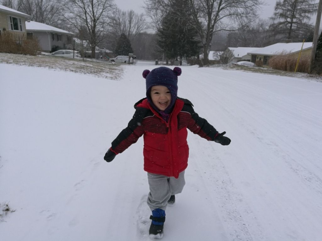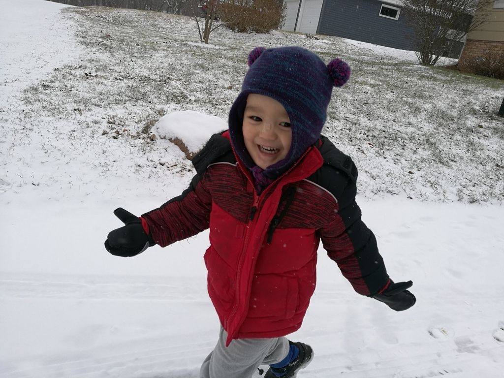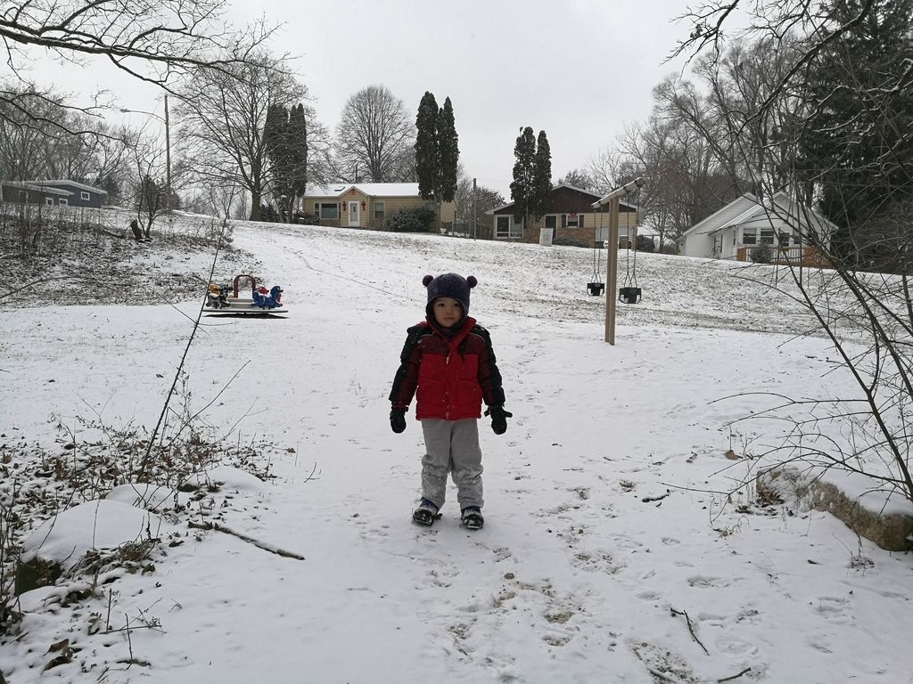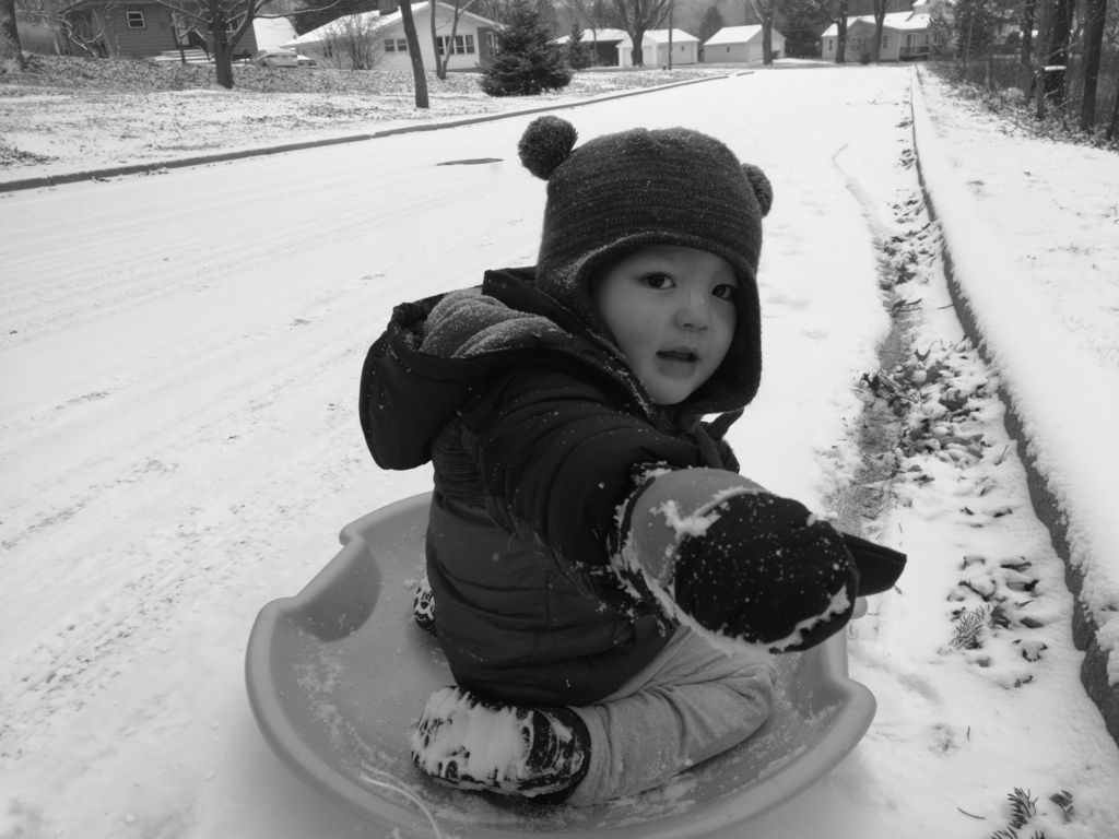 We went sledding down the little hill for a while, then he wanted me to pull him around. We trekked around two blocks. He's getting heavier, and I'm not getting any younger, but he's so darn cute I can't say no.