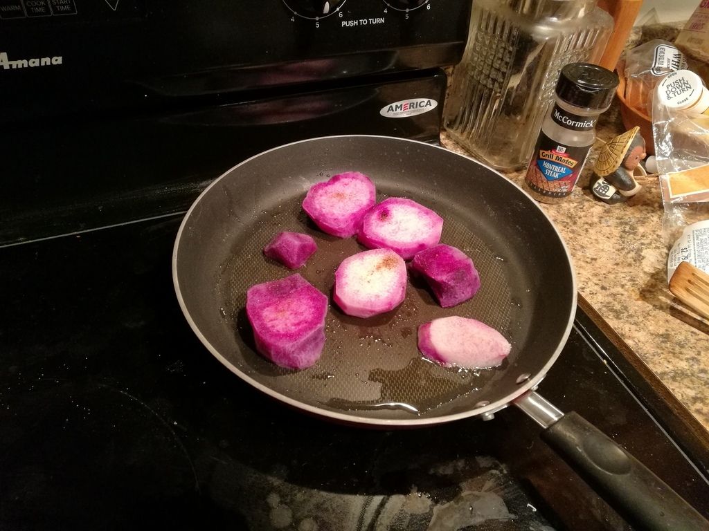 Sasuke and I went out shopping where we saw these ridiculous looking "ratalu" yams. I always buy that stuff to be funny, but Masami got me back by making me cook it. Pressure cooked, then roasted with some spices and they were great. I'd definitely get them again.