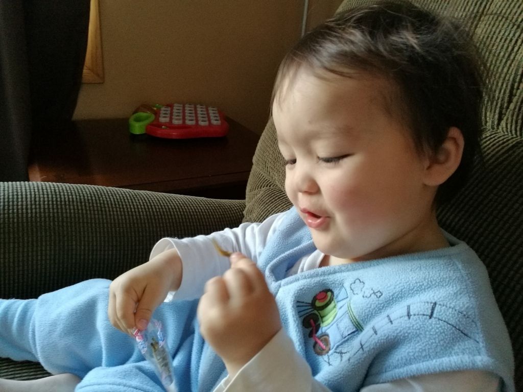 Sasuke often asks me to take a picture of his toy and then allows just a fraction of a second for me to do so before reaching for my phone and saying "見る?" (Can I see?)