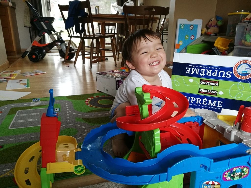Sasuke's been drawn to the Legos in the toy aisles lately, so Masami bought him a $1 pack of Lego policemen.